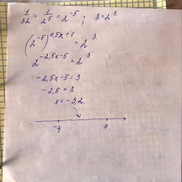Укажите промежуток, которому принадлежит корень уравнения (1/32)^0,5х+1 = 8. Помогите пожалуйста