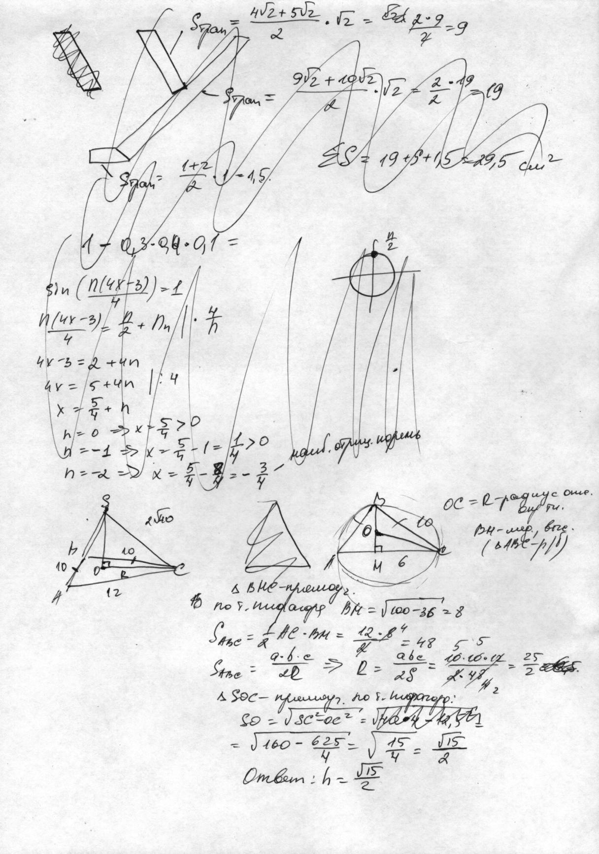 в треугольной пирамиде боковое ребра равны 2√40 длина сторон основания 10, 10 и 12 Найдите высоту пирамиды