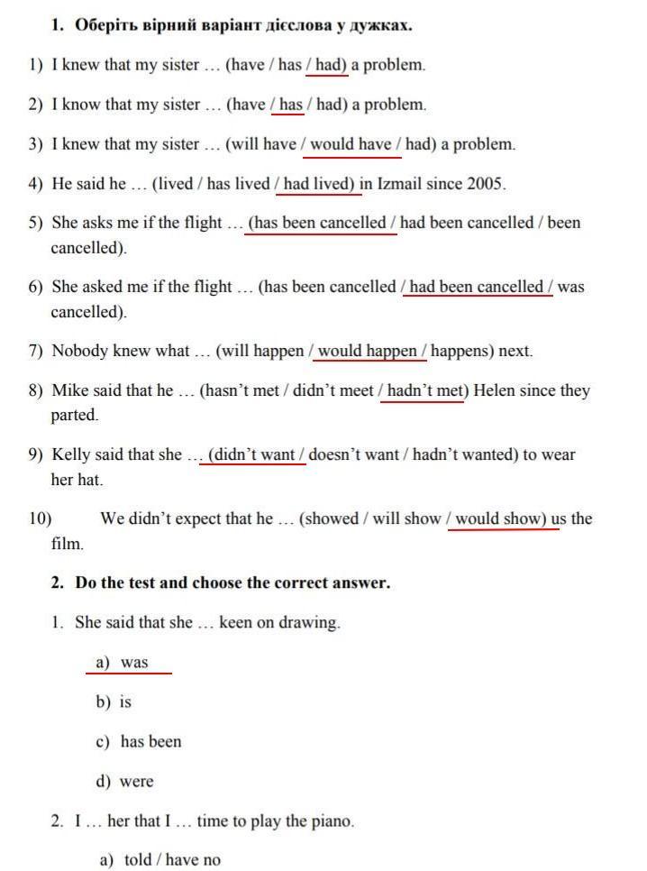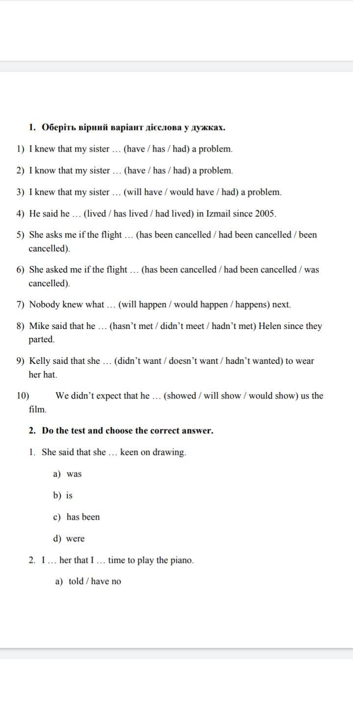 2. I … her that I … time to play the piano.