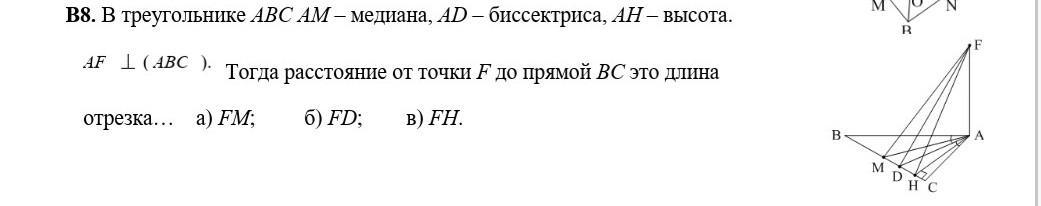 Именно отрезок FH является расстоянием до прямой BC т.к. FH является перпендикулярным по отношению к прямой.