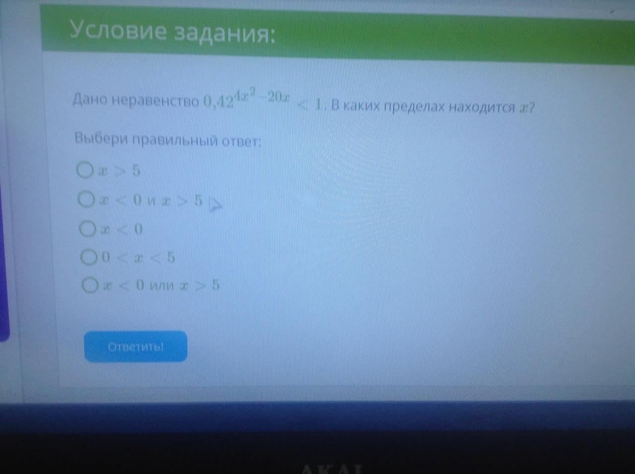 Дано неравенство 0,424x2−20x<1. В каких пределах находится x? Выбери правильный ответ: