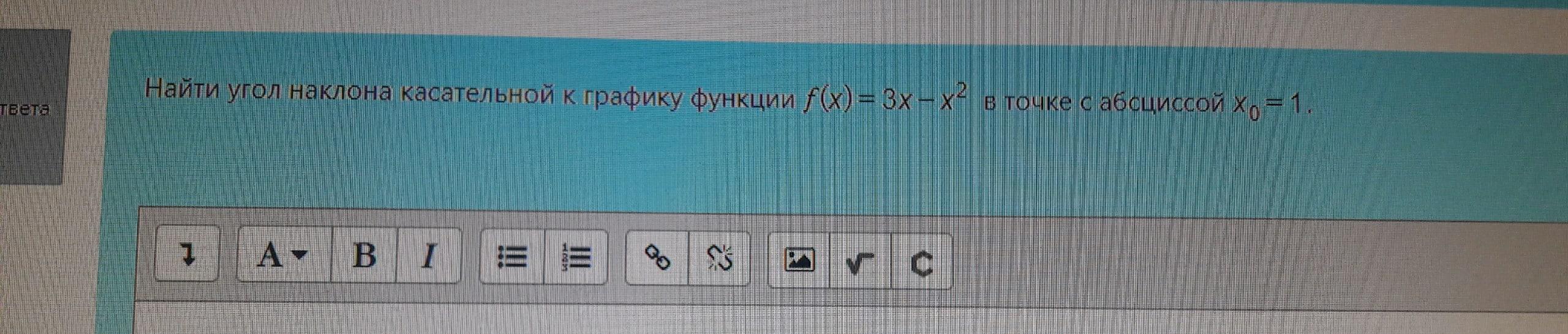 Найти угол наклона касательной к графику функции f(x)=3x-x^2 в точке с абсциссой x0=1