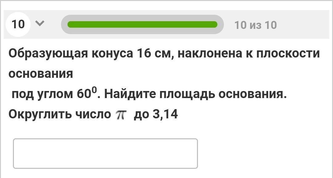 Получаем, что площадь основания - это площадь окружности, которую находим по формуле:
