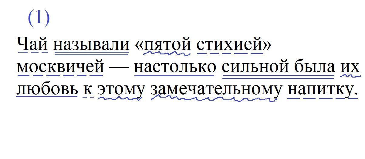 Задание: произведите синтаксический разбор трех синтаксических единиц: сложного предложения, простого предложения, словосочетания Чай называли «пятой стихией» москвичей: настолько сильной была их любовь к этому замечательному напитку. Очень срочно надо!!!!Пожалуйста)))))
