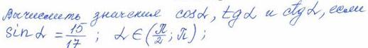cosa = √(1 - sin^2 a) = √(1 - 225/289) = - 8/17