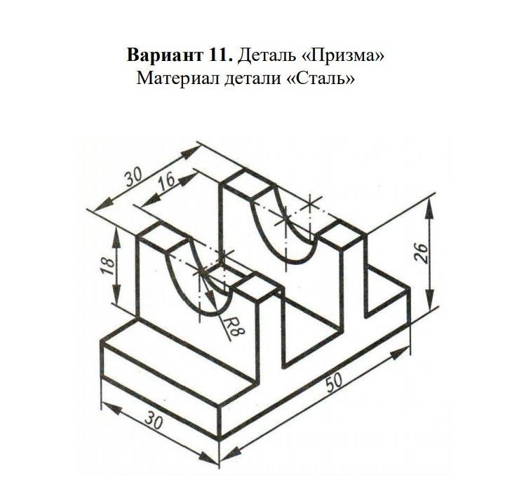 Указать на изображении части детали, которые являются основными пространственными фигурами. Написать размеры каждой части