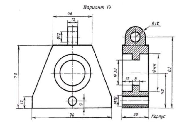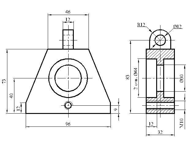 2. На главном виде убрала размер Ф12, т.к. размеры не указывают по невидимым линиям - перенесла на вид слева.