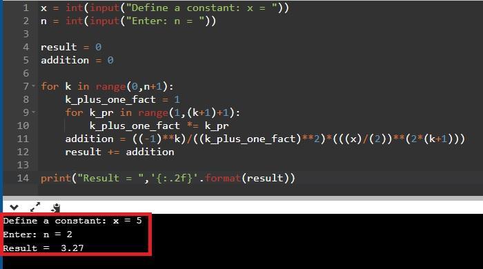 addition = ((-1)**k)/((k_plus_one_fact)**2)*(((x)/(2))**(2*(k+1)))
