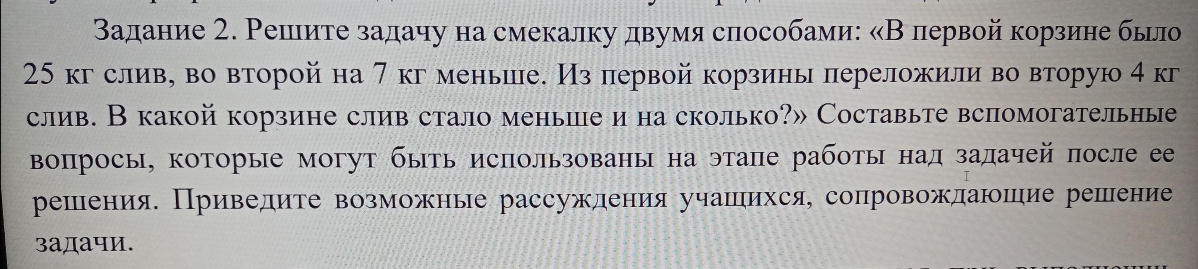 Ответ: В 1-ой корзине, так как в ней изначально было 25кг а во второй 18,(25-7=18). Но из первой корзины взяли 4кг и переложили во вторую. Следовательно в 1-ой корзине на 4 кг стало меньше.