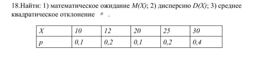 35 баллов ! Найти: 1) математическое ожидание M(X); 2) дисперсию D(X); 3) среднее квадратическое отклонение (продолжение на скриншоте)
