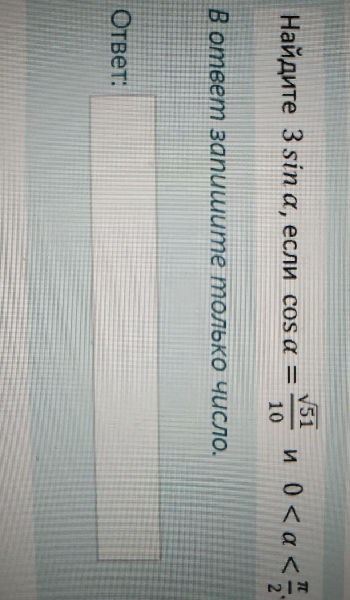 sina = √(1 - cos^2 a) = √(1 - 51/100) = 7/10