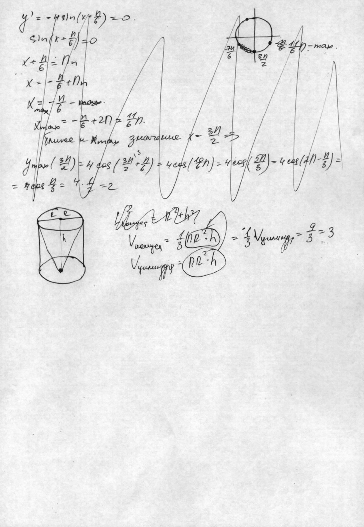 В цилиндр объем которого равен 9 необходимо вставить воронку в виде конуса, так чтобы основания совпало с основанием цилиндра и высота равнялась высоте цилиндра. Объем воронки равен: A) 6,5 В) 4 С) 3 D) 4,5 E) 9