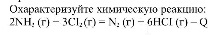 Реакция протекает между аммиаком и хлором.Продуктами реакции являются азот и хлороводородная кислота. Реакция эндотермическая (с поглощение тепла) .
