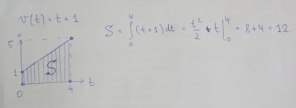 Если скорость материальной точки, движущейся прямолинейно, равна v (t)=t+1 , тогда путь S, пройденный точкой за время t = 4 от начала движения, равен …
