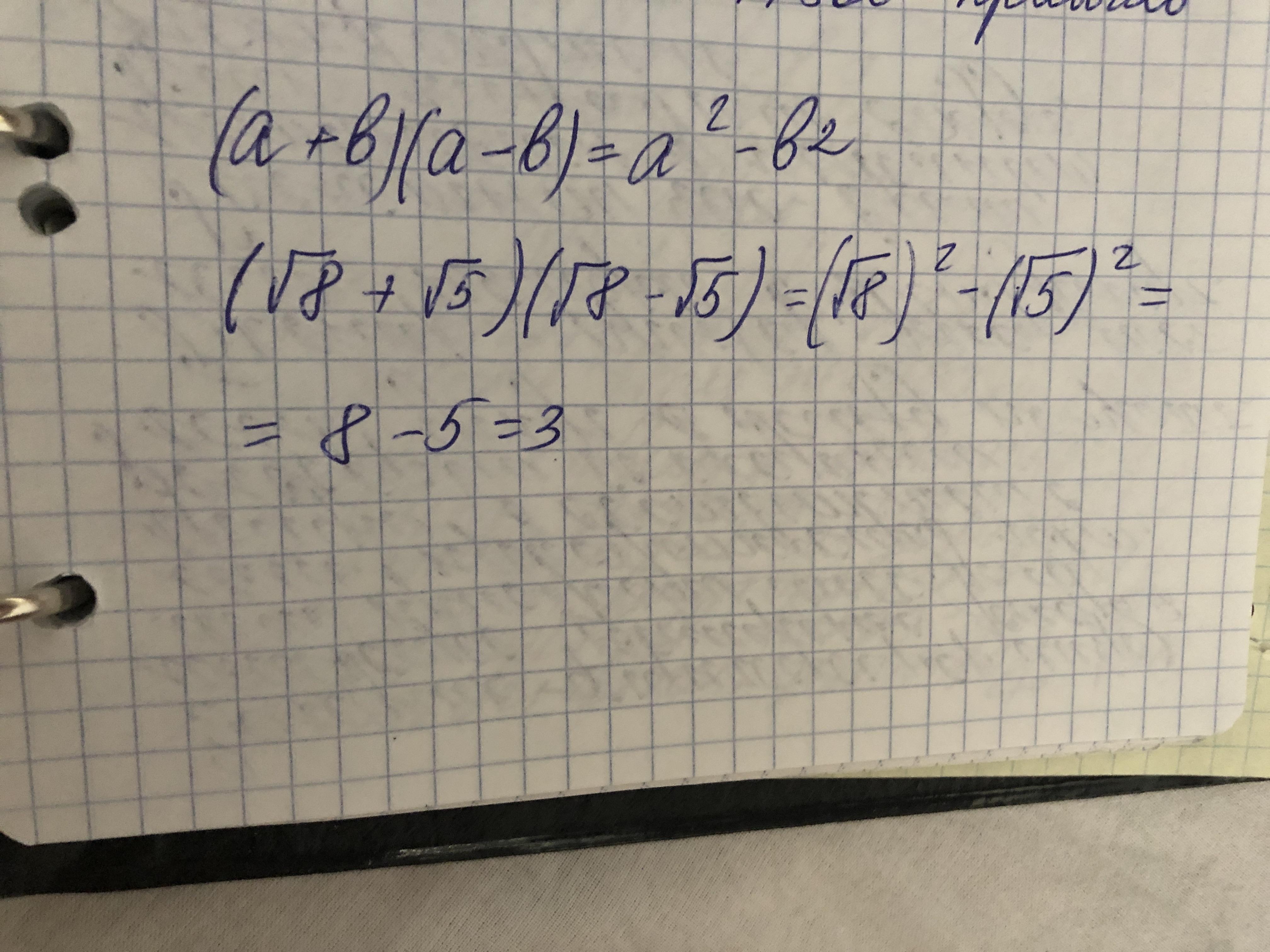 Тогда (√8+√5)×(√8−√5)= (√8)²−(√5)²= 8−5= 3.