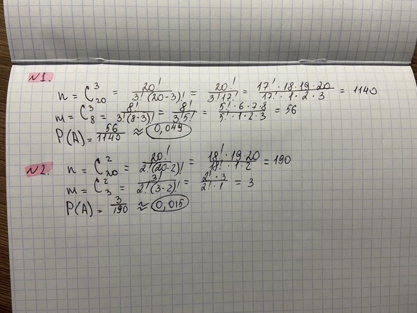 Число общих элементарных исходов равно числу способов вынуть три детали из 20, т.е. . Число благоприятных исходов :