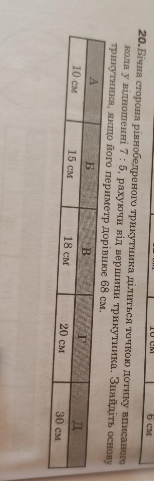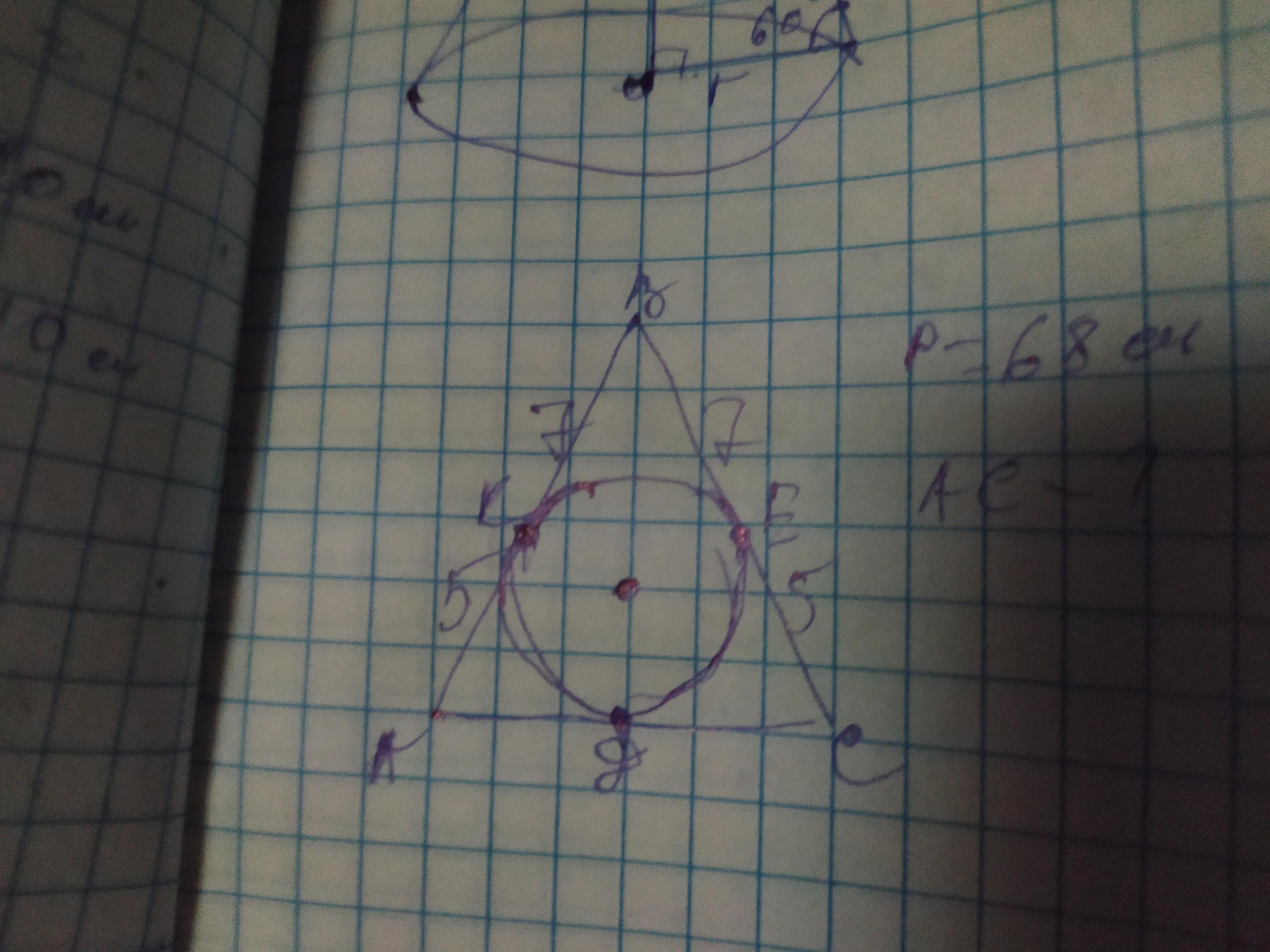 Объяснение: обозначим вершины треугольника А В С а точки касания Д К Е с основанием АС, а пропорции 7х и 5х. Стороны треугольника являются касательными к вписанной окружности и отрезки касательных соединяясь в одной вершине равны от вершины до точки касания. Поэтому КВ=ВЕ=7х, АК=АД=СД=ЕС=5х. АВ=ВС=5х+7х=12х; АС=5х+5х=10х. Зная периметр треугольника, составим уравнение: