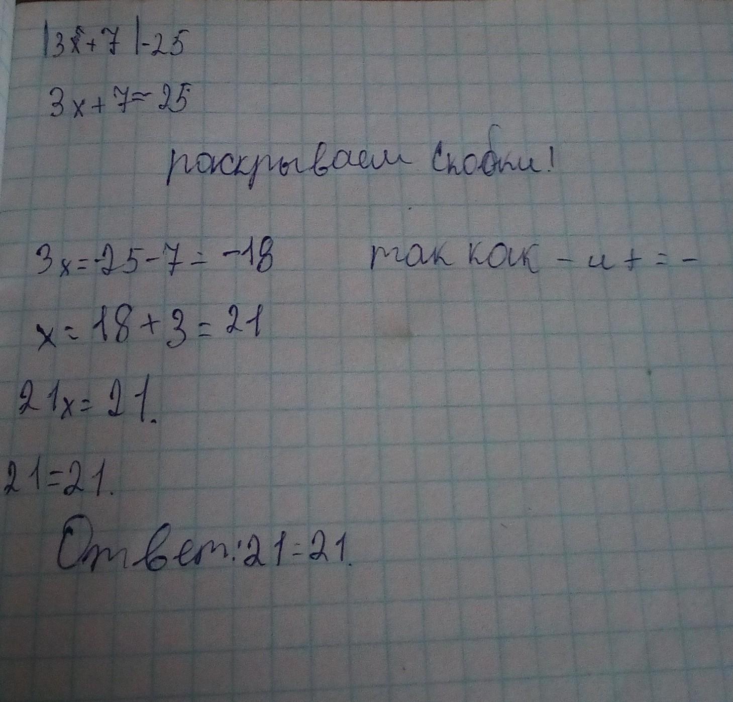 Укажите наибольшее целое отрицательное число на области определения функции у=корень из |3x+7|-25. Все под корнем,над корнем цифра 8