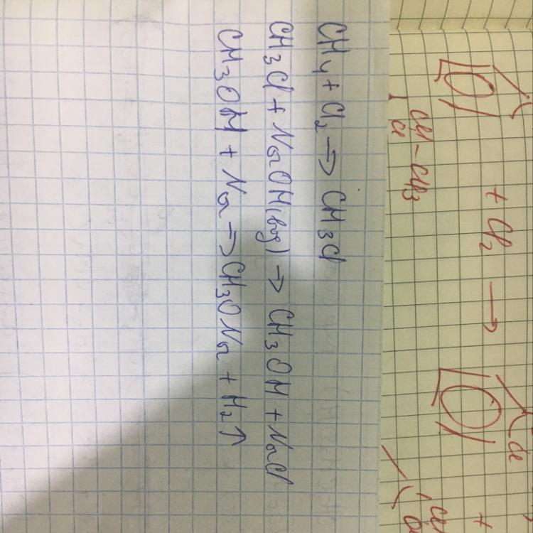 Написать уравнение реакций,при помощи которых можно осуществить превращения: CH4-CH3CL-CH3OH-CH3ONa