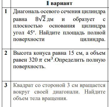 1. Т.к. диагональ с проекцией диагонали на плоскость основания образует 45 градусов, то высота цилиндра равна диаметру основания цилиндра. Получается, осевое сечение - квадрат.