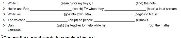 Ответ:1.was searching, found 2. Were watching, heard 3. Were going, began 4. Erupted, were climbing 5. Asked , was doing
