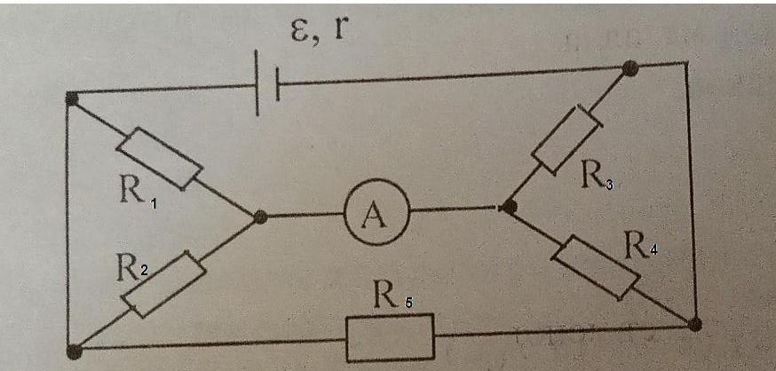 Заметим, что сопротивление ветви с амперметром равно сопротивлению R₅.