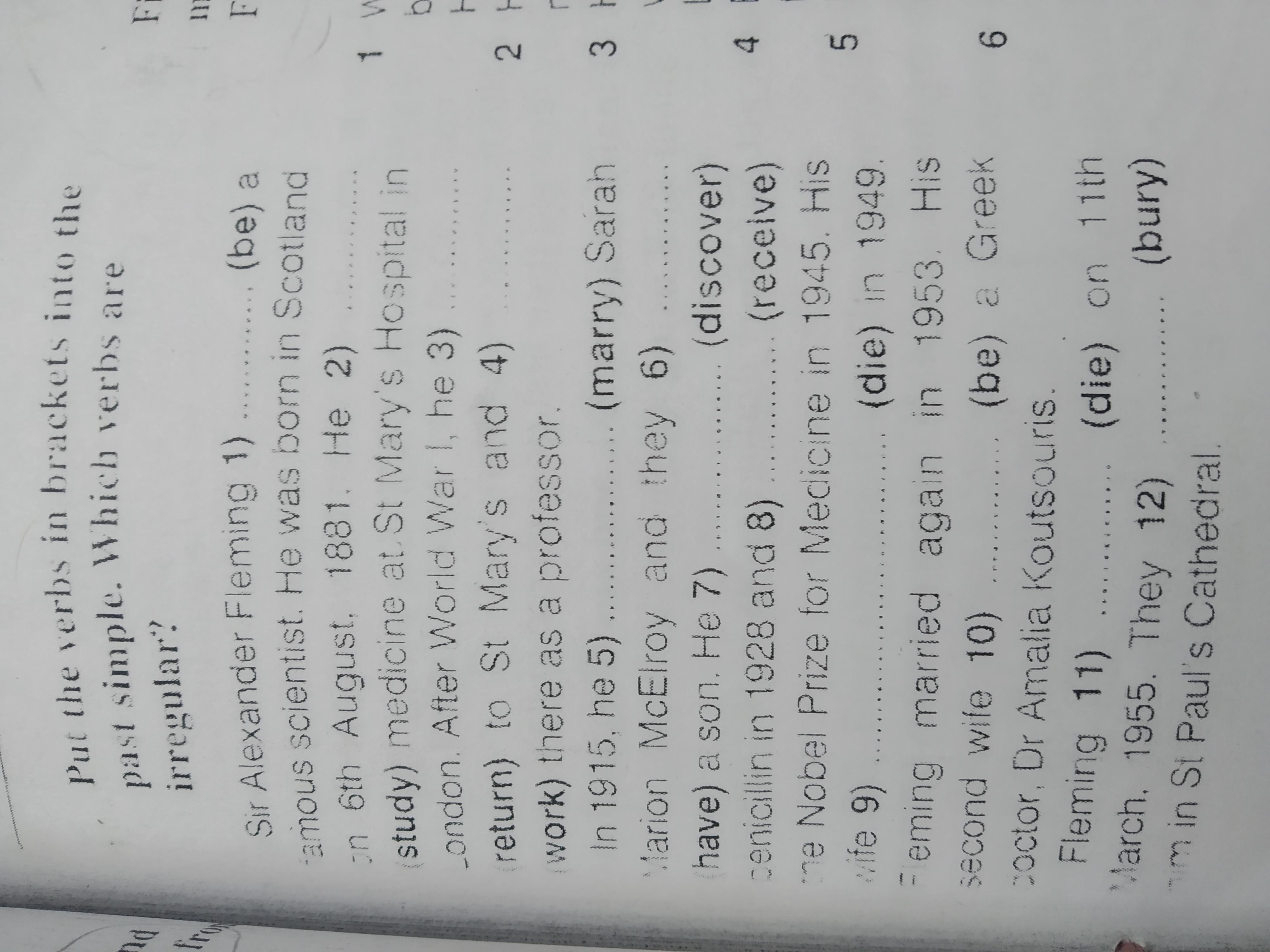 Помогите пожалуйста Put the verbs in brackets into the past simple. Which verbs are irregular.