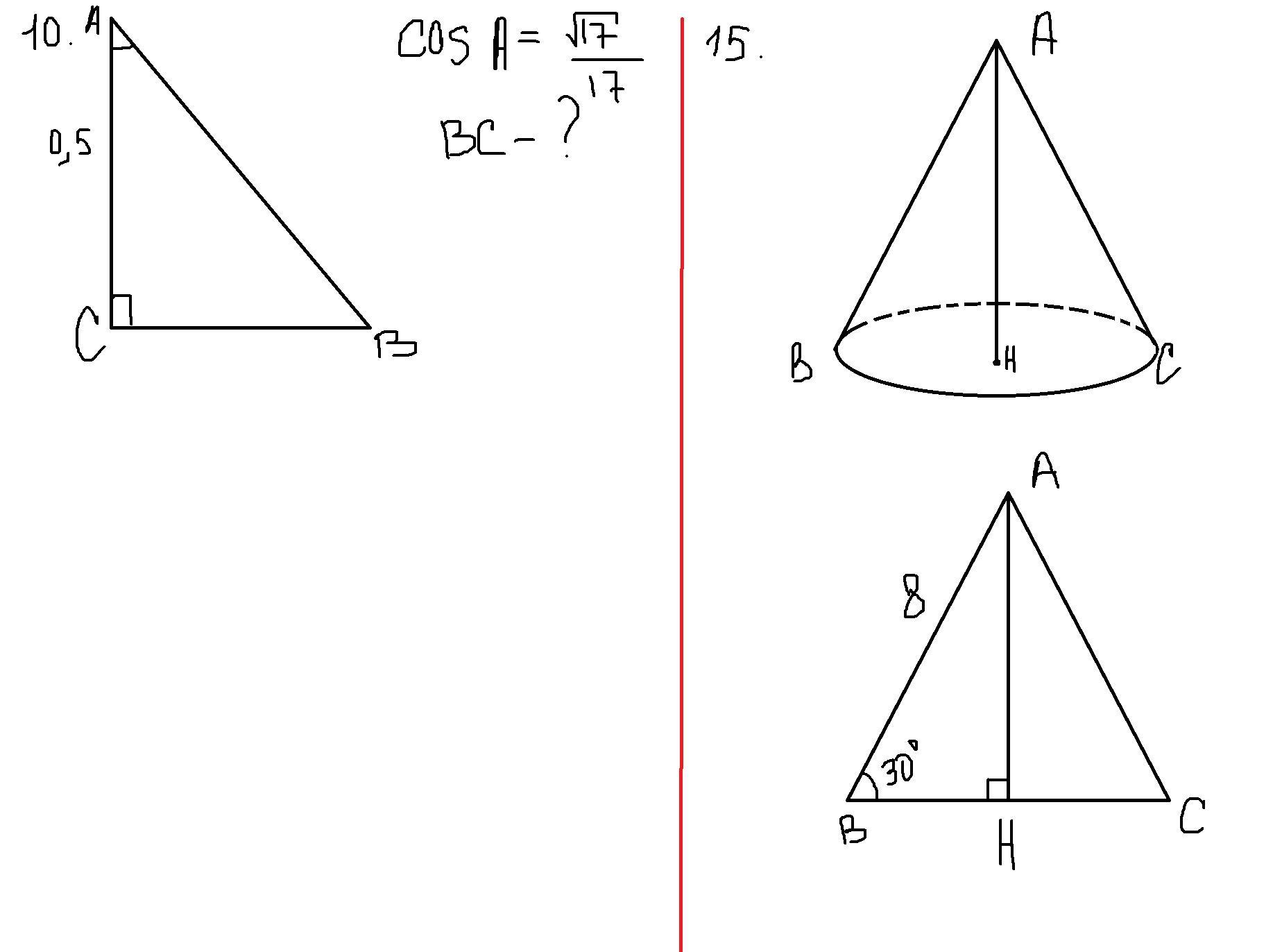 Срочно!!!! Образующая конуса равна 8 дм и составляет с плоскостью основания угол 30 градусов. Определите высоту конуса.