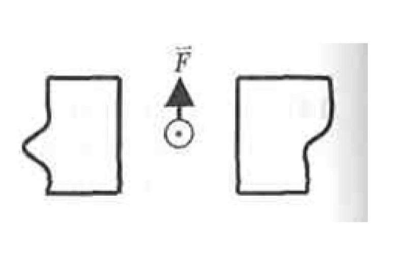 Направление силы Ампера и направление тока в проводнике указаны. Определите полюса магнита.
