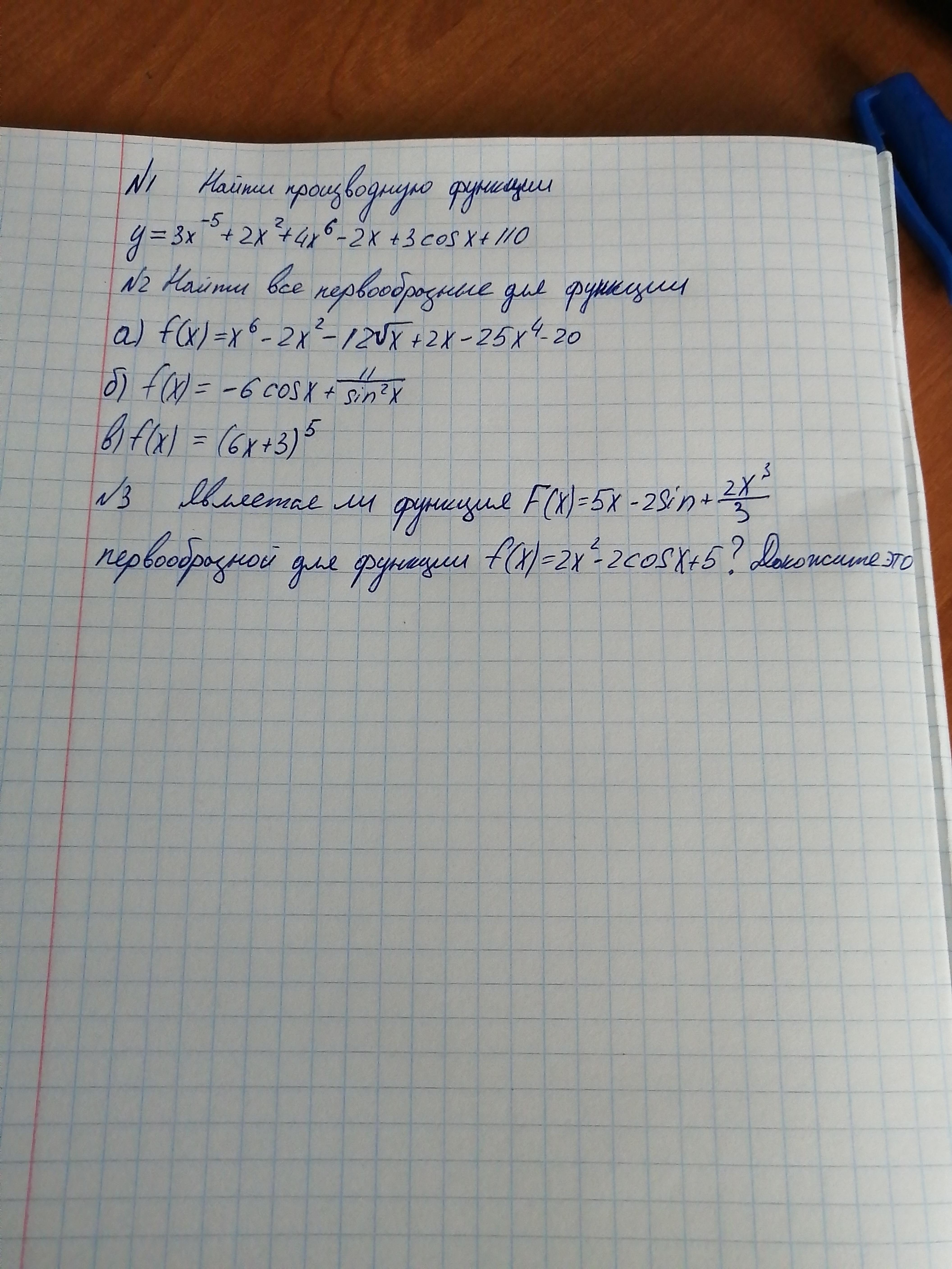 1) y = 3x⁻⁵ +2x² +4x⁶+3cosx+110