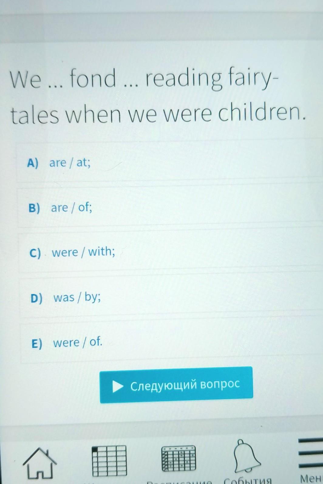 We WERE fond OF reading fairy-tales when we were children.
