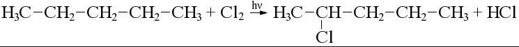 пентан + хлор → (hν) → 2-хлорпентан + соляная кислота