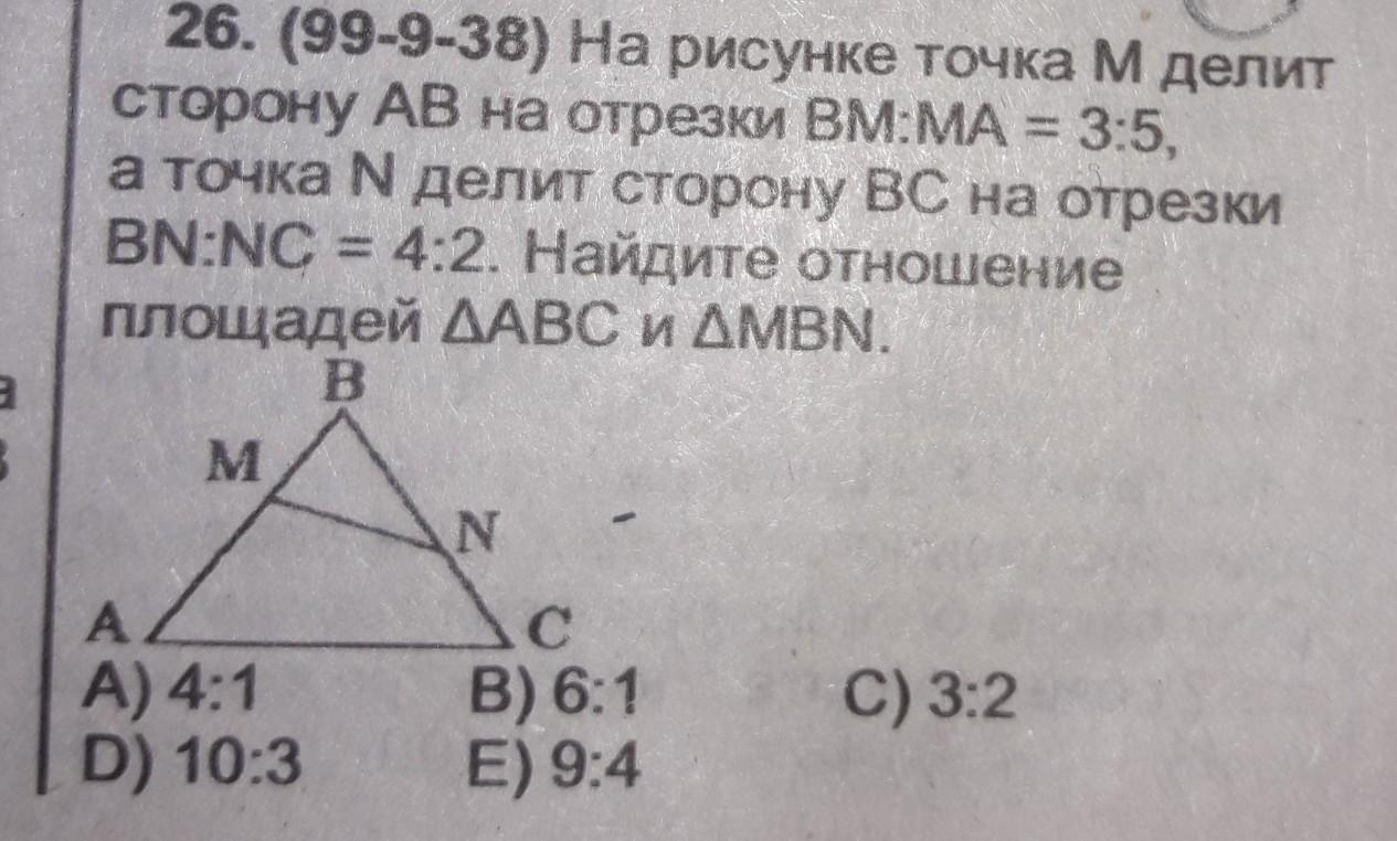 Smbn / Sabc = k^2 = 1/4, или Sabc : Smbn = 4:1