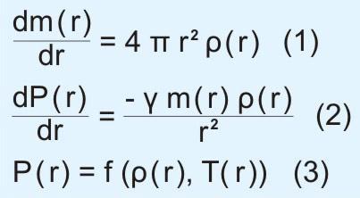 из трех уравнений для функций m(r) - масса в пределах радиуса r, P(r) - давление на расстоянии r от центра, p(r) - плотность сферической планеты на расстоянии r от центра:
