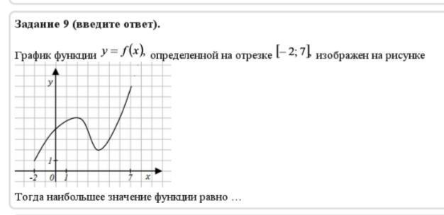 График функции y=f(x), определённой на отрезке [-2;7], тогда наибольшее значение функции равно... Объясните, ради Христа ♥