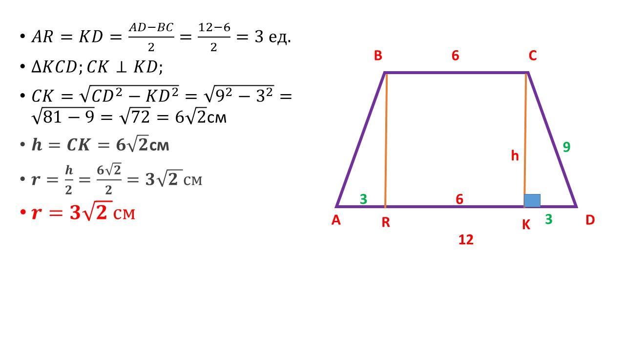 В трапецию, у которой нижнее основание в два раза больше верхнего и боковая сторона равна 9, вписана окружность.