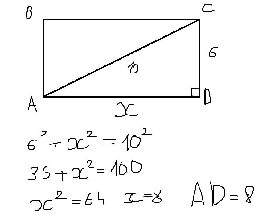 Рассмотрим Δ АСD - прямоугольный, ∡D=90°, тогда по теореме Пифагора