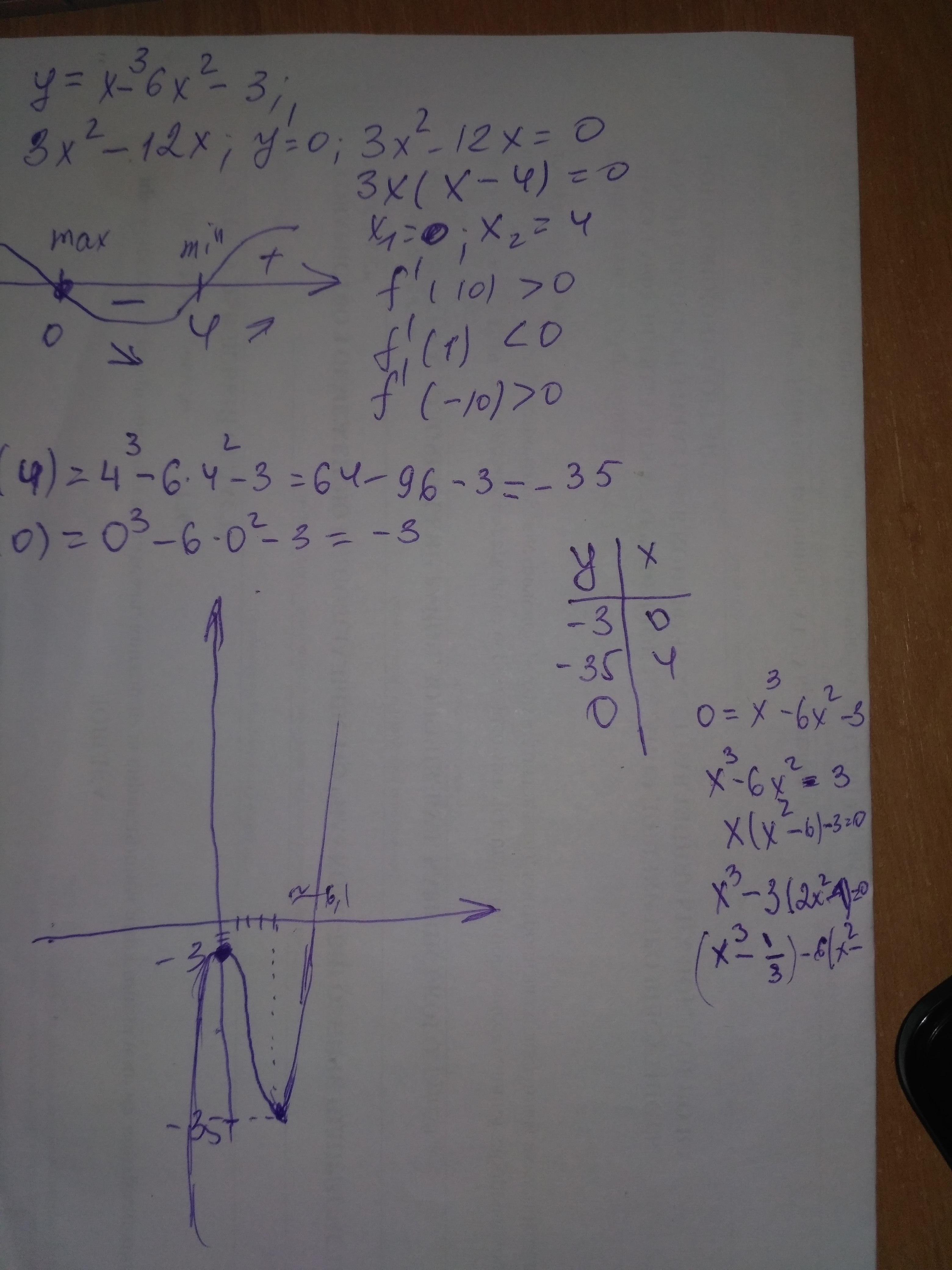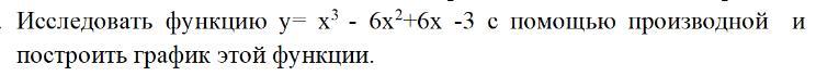 CРОЧНО ПОМОГИТЕ СДАТЬ СЕССИЮ. Исследовать функцию y=x^3-6x^2+6x-3 с помощью производной и построить график этой функции