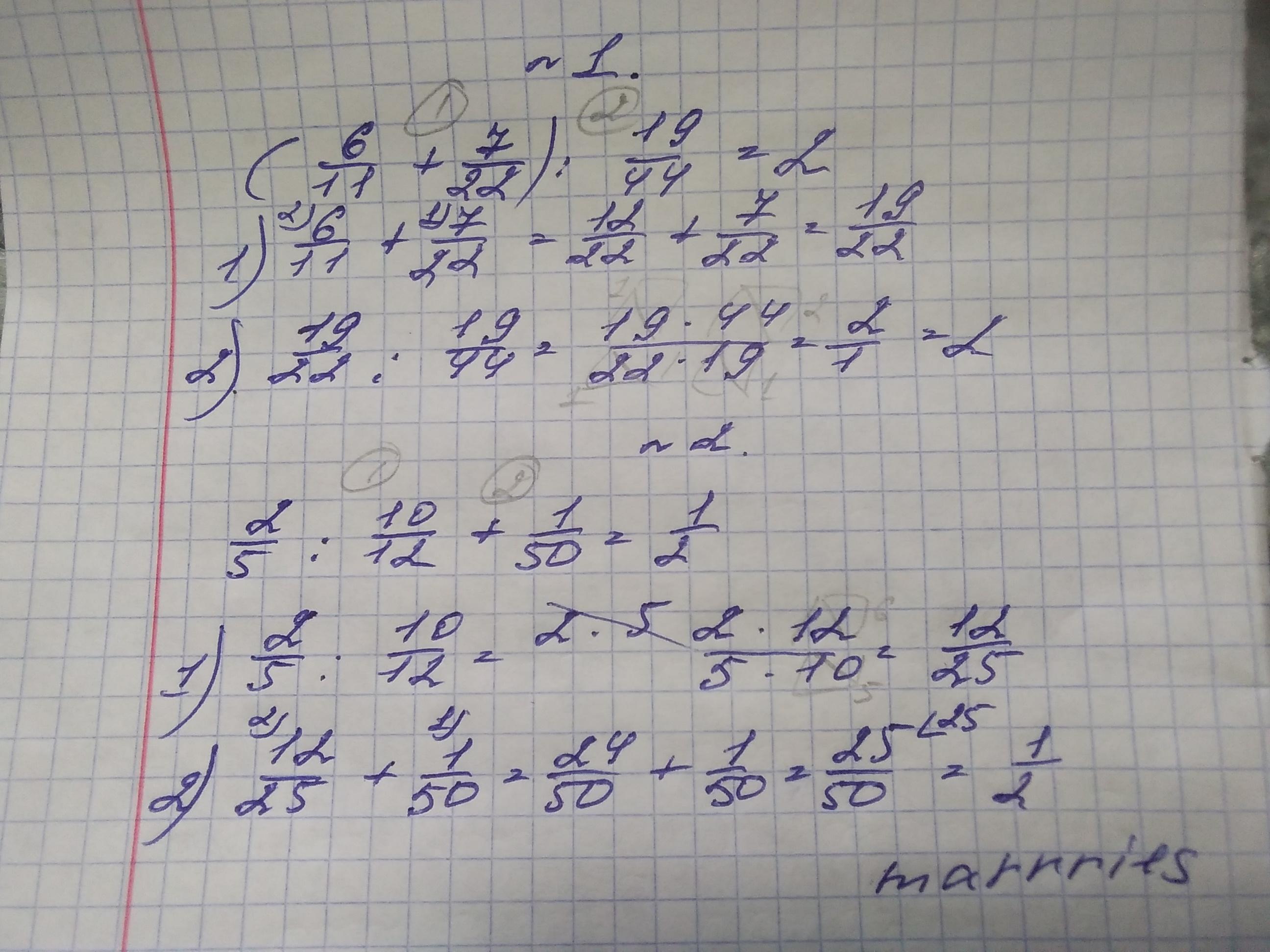 2. 2/5:10/12+1/50=1/2