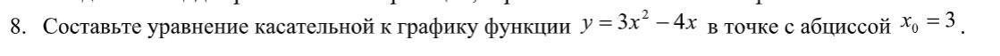Составить уравнение касательной к графику функции y= 3x^2-4x в точке с абсциссой x0=3