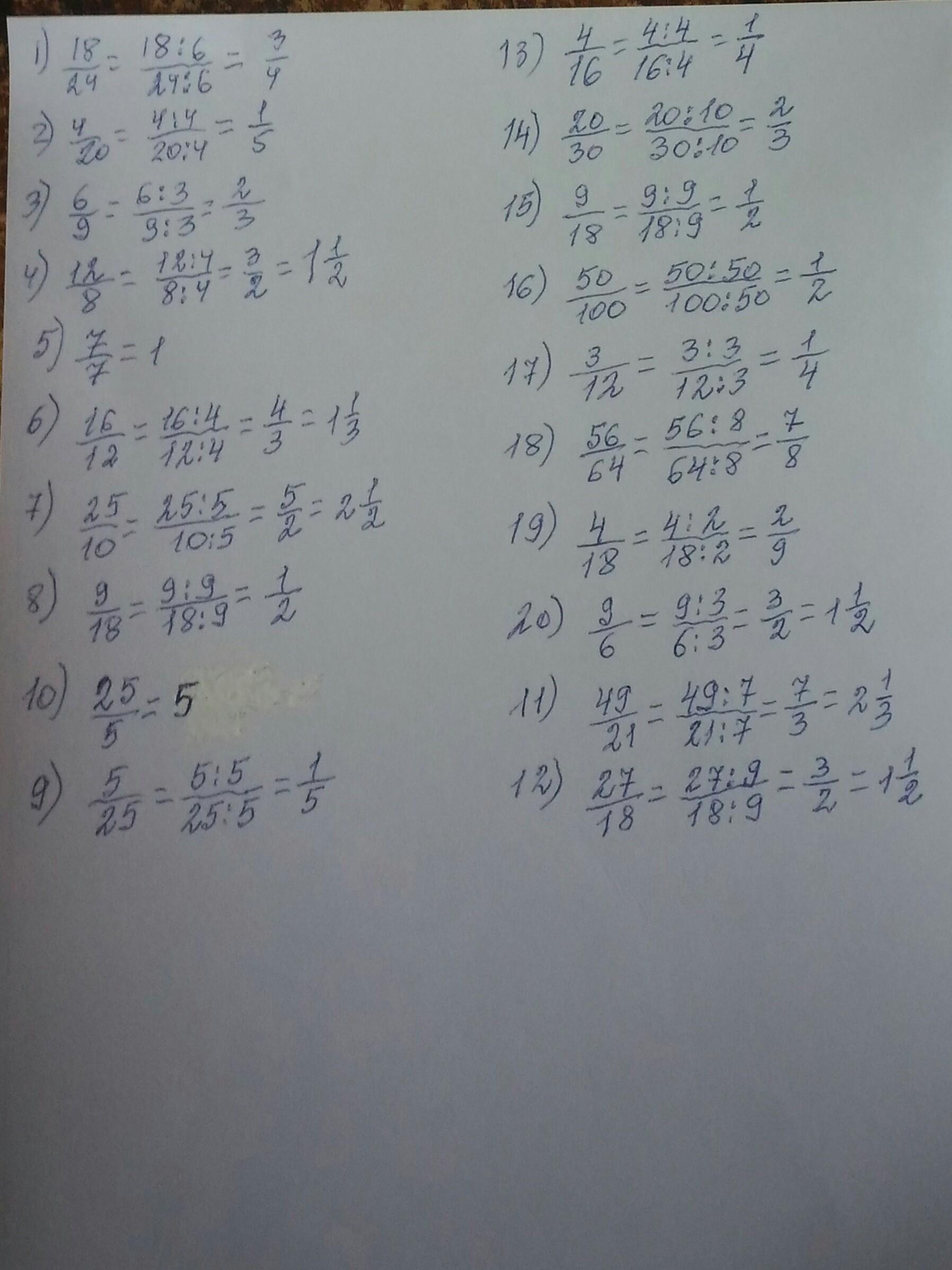 Деления писать не надо, они означают на сколько сокращаем числитель и знаменатель дроби.