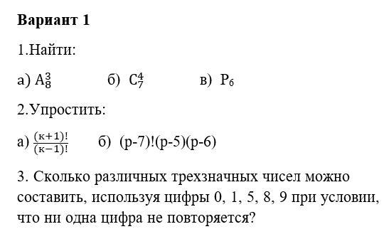 1. A) A - кол-во размещений из 8 по 3. Используя формулу находим: