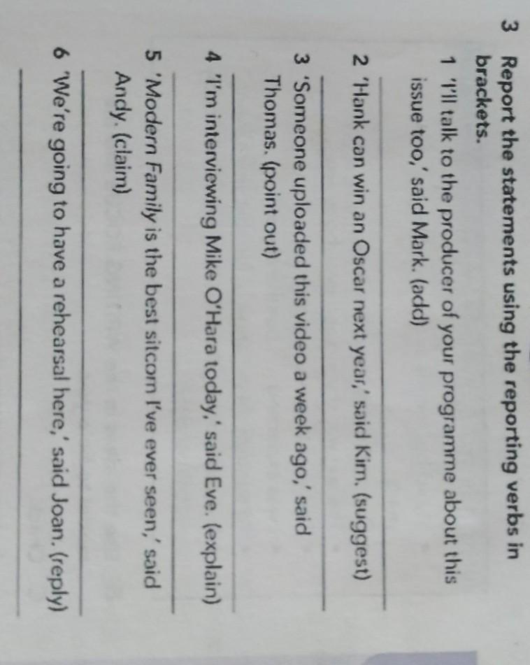 3 Report the statements using the reporting verbs in