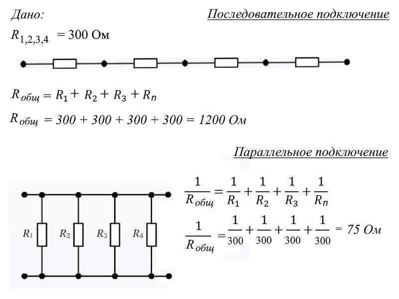 Четыре резистора, каждый с сопротивлением 300 Ом, соединены последовательно, а затем параллельно.Как меняется их общее сопротивление?С графиком и решением.Пж помогите срочно