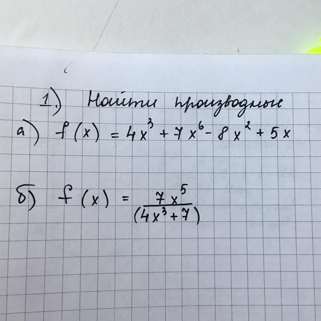 f'(x)= 4(x³)'+7(x⁶)'-8(x)'²+5(x)' = 4*3x² + 7*6x⁵ -8*2x +5 = 12x₂ +42x⁵-16x+5