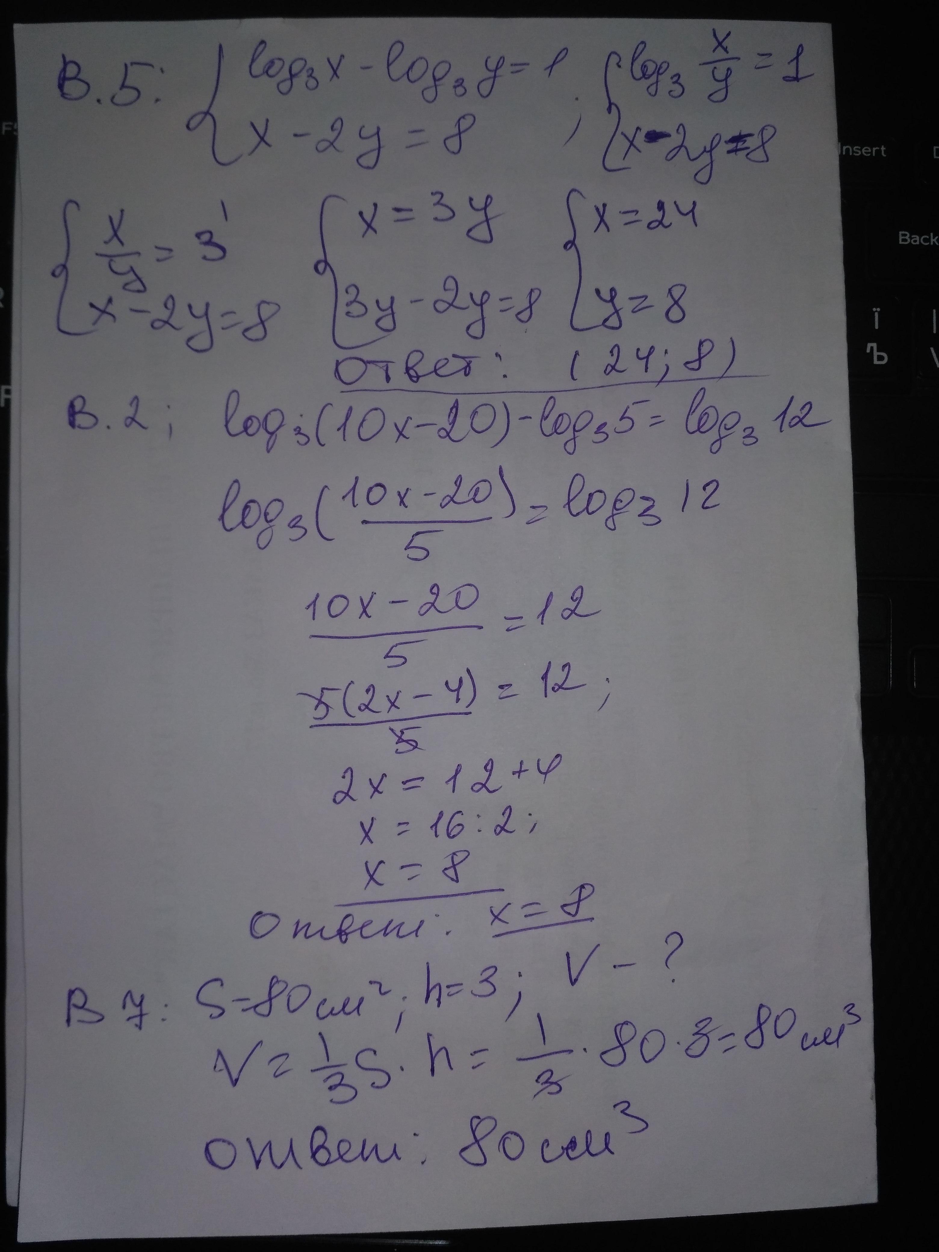 в2: ㏒₃(10х-20)- ㏒₃5= ㏒₃12
