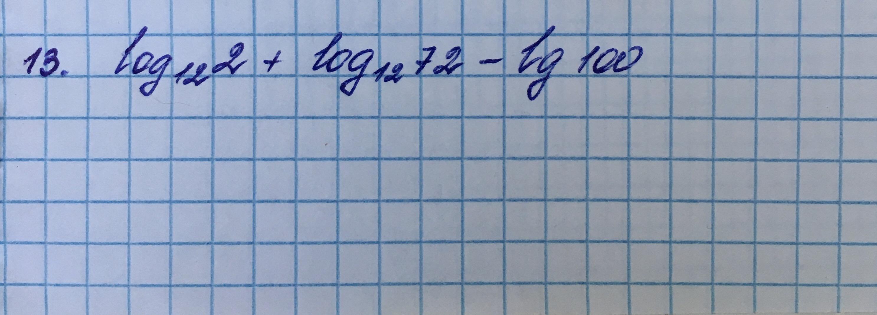 log_{12}2+log_{12}72-lg100=log_{12}(2*72)-lg10^{2} =log_{12} 144-2lg10=log_{12}12^{2} -2=\\=2-2=0\\\\Otvet:\boxed{0}