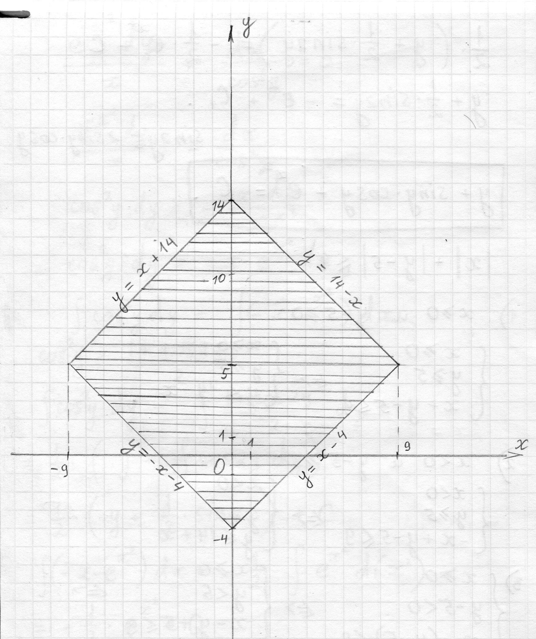 я написал решение на двух листках. Искомая область - это заштрихованная область на графике (на втором листке) ===>>
