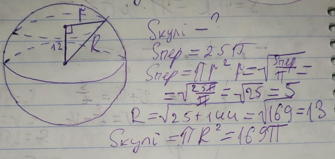 s(поверхні кулі) = πR² = 169π (див.рис)