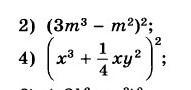 2) (3m^3-m^2)^2=9m^6-6m^5+m^4\\4)(x^3+\frac{1}{4}xy^2)=x^6+\frac{1}{2}  x^4y^2+\frac{1}{16} x^2y^4